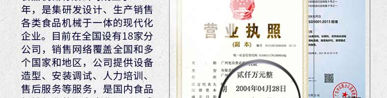廣州旭眾食品機械有限公司是一家集科研開發(fā),生產(chǎn)設(shè)計,營銷服務(wù)為一體的現(xiàn)代化生產(chǎn)企業(yè)。現(xiàn)代化生產(chǎn)車間,精湛制造技術(shù),所產(chǎn)機械歷經(jīng)市場重重考驗,不斷贏得海內(nèi)外客戶的贊譽。