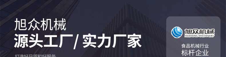 廣州旭眾食品機械有限公司是一家集科研開發(fā),生產設計,營銷服務為一體的現(xiàn)代化生產企業(yè)?,F(xiàn)代化生產車間,精湛制造技術,所產機械歷經市場重重考驗,不斷贏得海內外客戶的贊譽。
