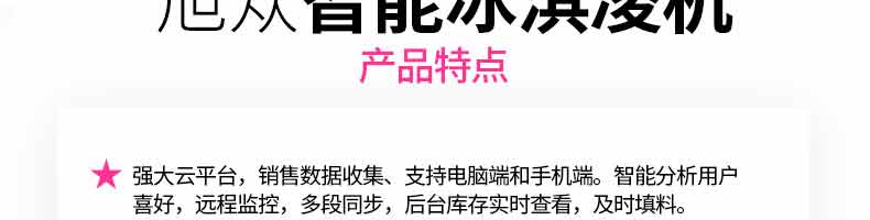 無(wú)人售貨冰淇淋機(jī), 人工成本越來(lái)越高,無(wú)人店、無(wú)人售賣(mài)機(jī)必將是一個(gè)趨勢(shì)。簡(jiǎn)單而又重復(fù)的勞動(dòng)(售賣(mài))必將被智能無(wú)人替代。無(wú)人售貨自助冰淇淋機(jī)支持多種支付方式,支持遠(yuǎn)程監(jiān)管功能,支持預(yù)冷保鮮,支持多種口味混合,自動(dòng)清洗少料報(bào)警。無(wú)需人工、場(chǎng)地?zé)o限制。