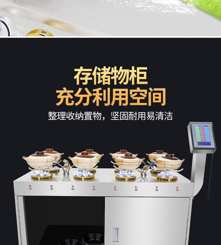 智能煲仔-爐商用四頭六眼旋轉(zhuǎn)韓式猛火灶-砂鍋灶燃?xì)庠睿?/p>