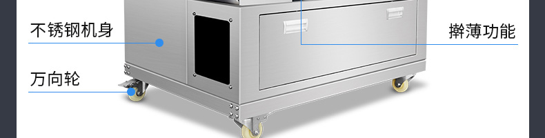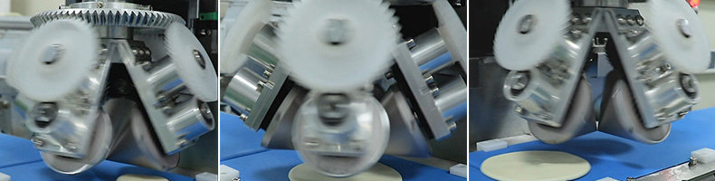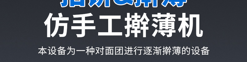 XZ-150型搟薄機,為一種對面團可進行氣動拍餅或仿手工搟薄的設(shè)備,可根據(jù)用戶需要對面團的直徑、厚度進行調(diào)整并將面團按照設(shè)定的規(guī)格進行搓圓摔搟薄。