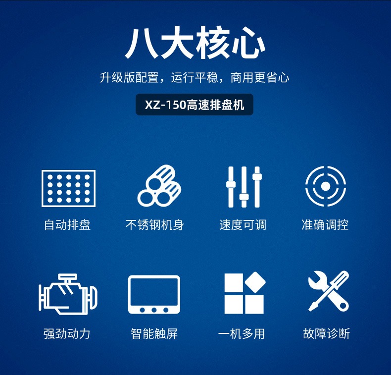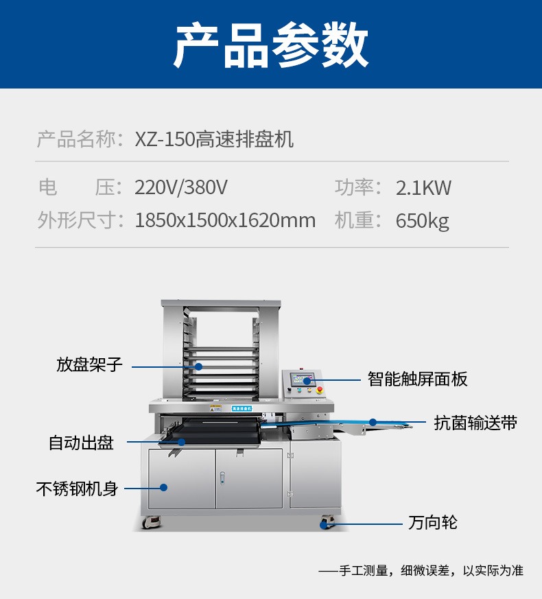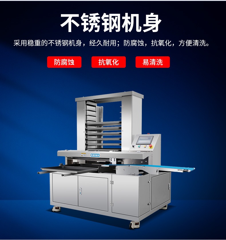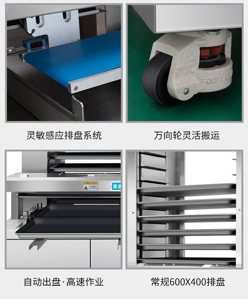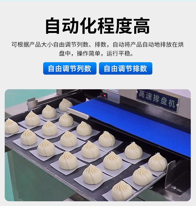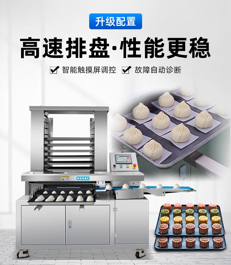 多功能商用高速排盤機(jī),自動化程度高,可根據(jù)產(chǎn)品大小自由調(diào)節(jié)列數(shù)、排數(shù),自動將產(chǎn)品自動地排放在烘盤中,操作簡單,運(yùn)行平穩(wěn)。智能觸屏面板??刂葡到y(tǒng)由三菱PLC和進(jìn)口觸摸屏組成,操作簡單方便。具有故障自動診斷,一目了然。