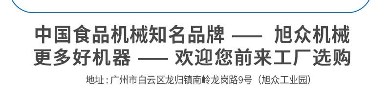 廣州旭眾食品機械有限公司是一家集科研開發(fā),生產(chǎn)設(shè)計,營銷服務(wù)為一體的現(xiàn)代化生產(chǎn)企業(yè)?,F(xiàn)代化生產(chǎn)車間,精湛制造技術(shù),所產(chǎn)機械歷經(jīng)市場重重考驗,不斷贏得海內(nèi)外客戶的贊譽。