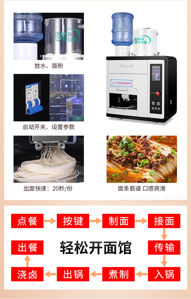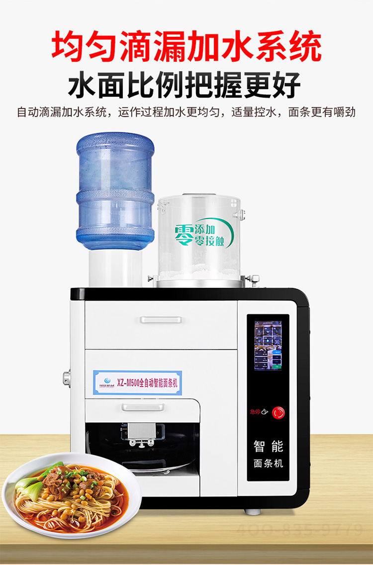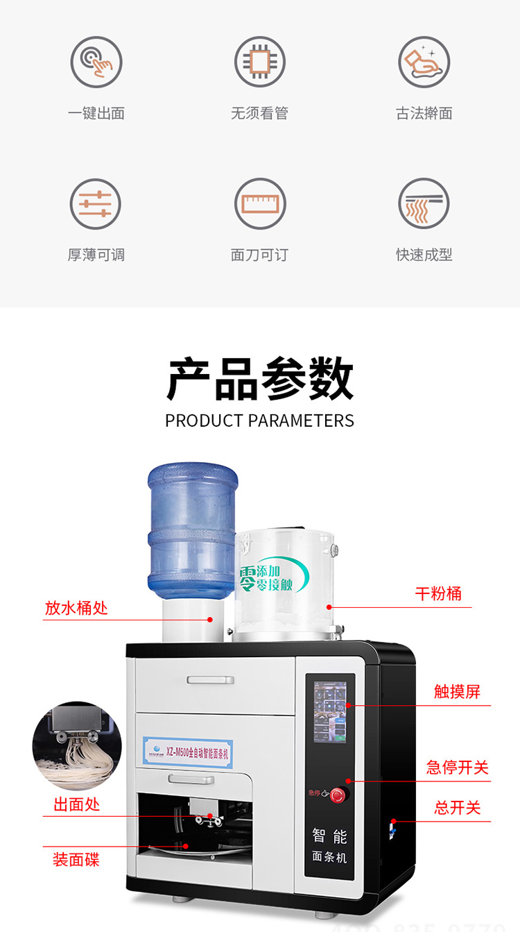 全自動商用快速出面電動素面濕面M500臺式制面機(jī)器,20秒全自動出面,全程無需看管。一鍵出面,面做好,自動停。均勻滴漏加水系統(tǒng),水面比例把握更好。自動滴漏加水系統(tǒng),運(yùn)作過程加水更均勻,適量控水,面條更有嚼勁。