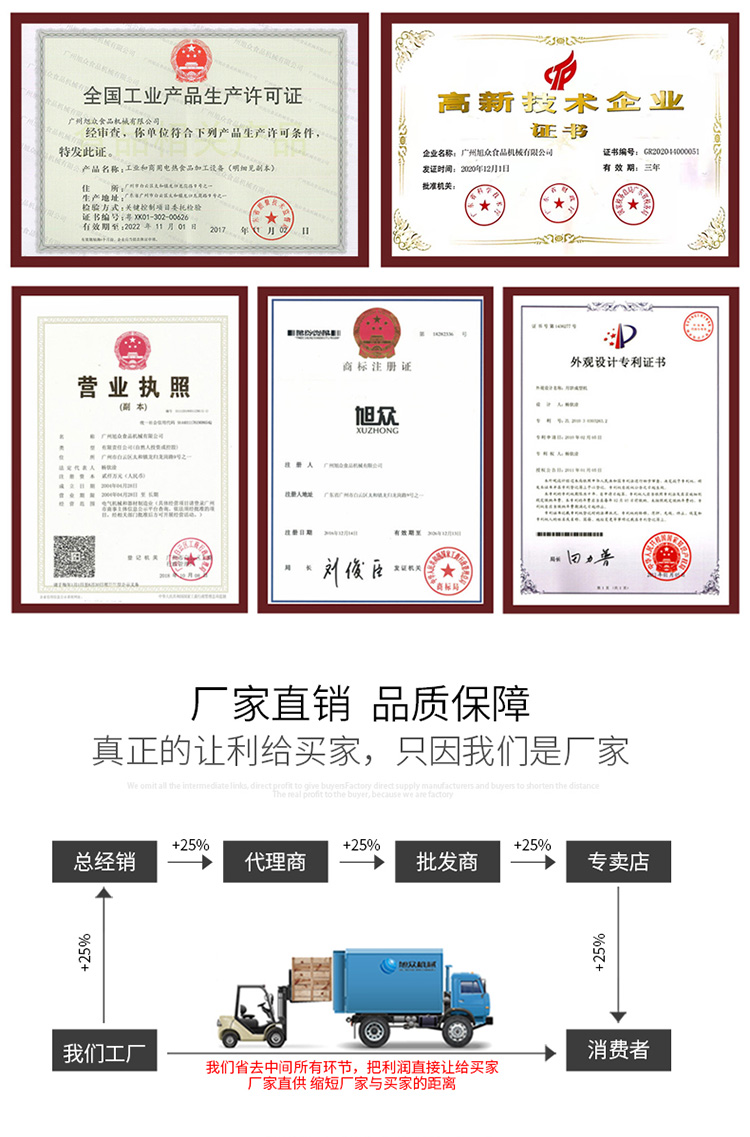 廣州旭眾食品機(jī)械有限公司是一家集科研開發(fā),生產(chǎn)設(shè)計,營銷服務(wù)為一體的現(xiàn)代化生產(chǎn)企業(yè)。現(xiàn)代化生產(chǎn)車間,精湛制造技術(shù),所產(chǎn)機(jī)械歷經(jīng)市場重重考驗(yàn),不斷贏得海內(nèi)外客戶的贊譽(yù)。
