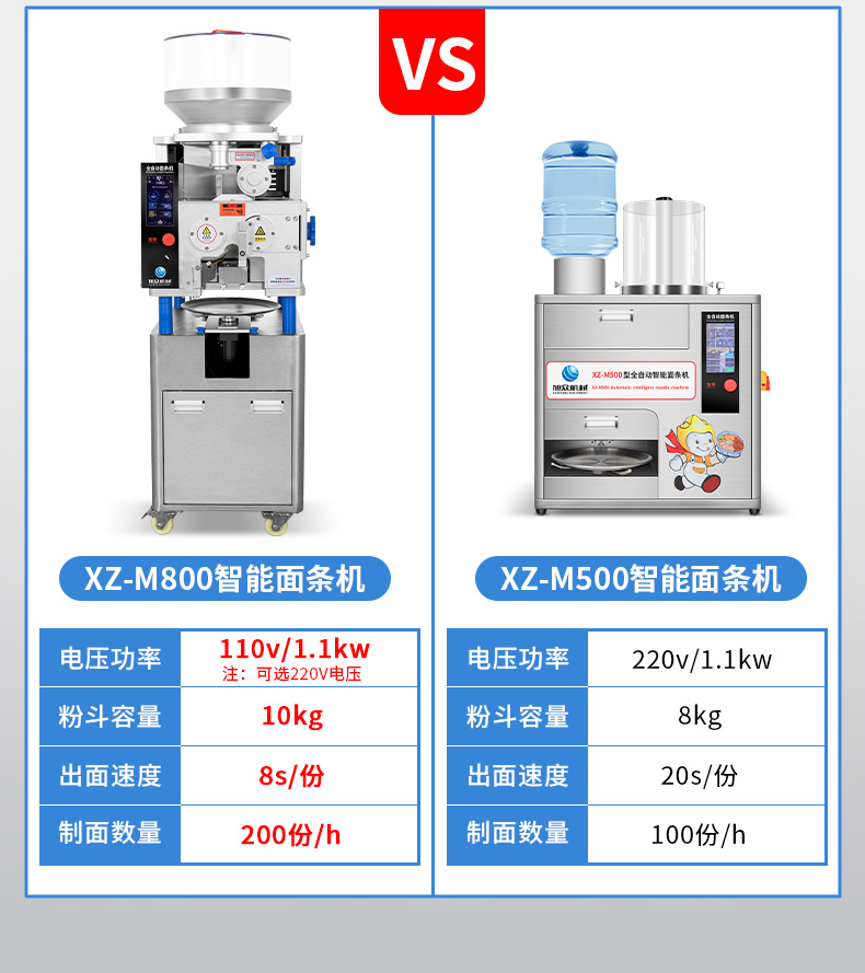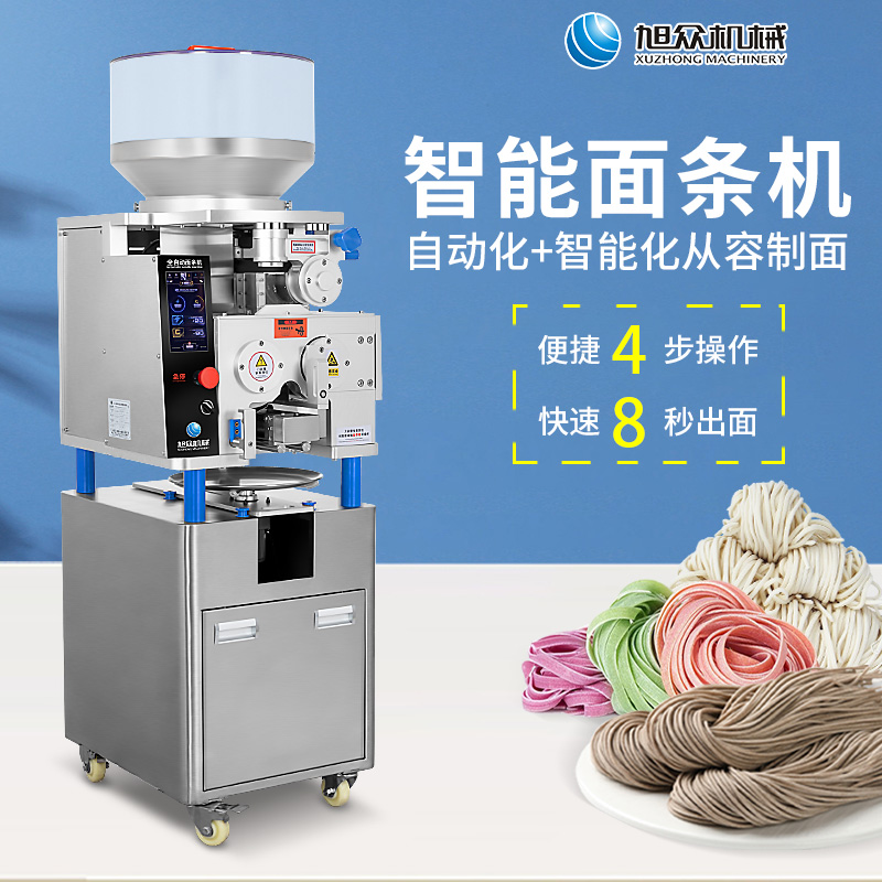 XZ-M800面條機,制作多種面條:拉面、小面、牛肉面、韭葉面板面、褲帯面、蔬菜面、水果面、雜糧面8秒快速出面人性化設(shè)計,更便捷更高效與同類型機器相比,出面更快、秒換刀具。全不銹鋼刀組全不銹鋼可拆卸刀組,一秒更換防腐蝕抗氧化,清洗方便。