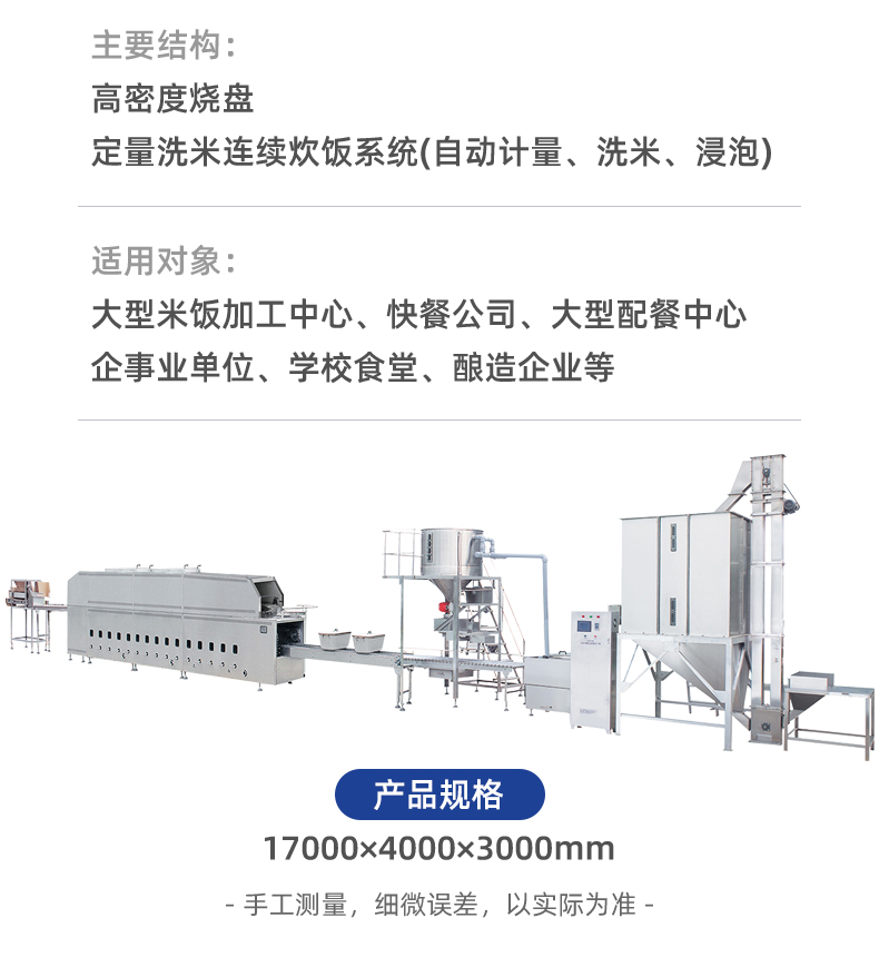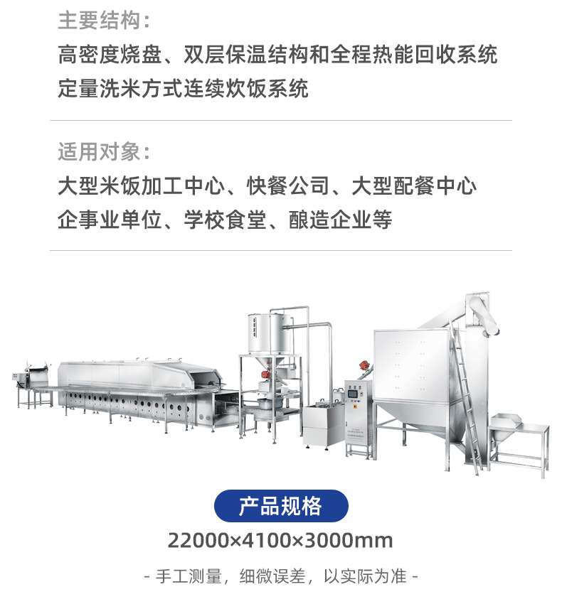 米飯生產(chǎn)線,主要結(jié)構(gòu):不銹鋼箱體,密閉不銹鋼飯盤,自動加熱循環(huán)系統(tǒng)。適用對象:大型米飯加工中心、快餐公司、大型配餐中心企事業(yè)單位、學(xué)校食堂、釀造企業(yè)等。實(shí)力大咖商用好幫手。提供培訓(xùn)、指導(dǎo)和工藝傳授,品牌服務(wù)有保障。