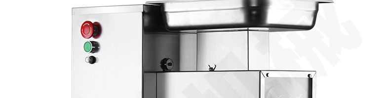 XZ-QE切肉機(jī),是一款可方便移動(dòng)的肉類加工設(shè)備,配置單層刀具一次性切肉片,二次切肉絲,再切成粒。底座設(shè)置有滑輪,移動(dòng)靈活,輕松便捷;刀具采取外置懸臂式設(shè)計(jì),拆洗方便,衛(wèi)生更有保障;配置多種刀具,可加工不同厚度的肉片,實(shí)現(xiàn)一機(jī)多用;機(jī)內(nèi)裝有安全保護(hù)開頭,刀具外露時(shí),機(jī)器自鎖不能啟動(dòng),以保安全;刀片用特殊不銹鋼材料制造,經(jīng)久耐用;卸下的刀具,不用清洗直接放置在6攝氏度以下的冰箱里,刀具余肉不發(fā)臭。