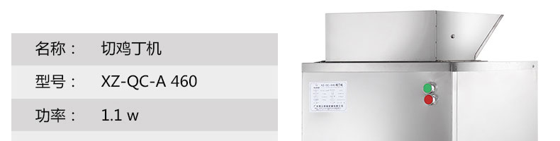 XZ-QC-A460切丁機(jī),切雞丁機(jī)適合將帶軟骨的禽類(lèi),如雞、鴨、鵝、鴿、魚(yú)類(lèi)等切成塊(?。?。本系列設(shè)備工作效率高,采用不銹鋼制作,美觀耐用,切割快速,少碎骨。