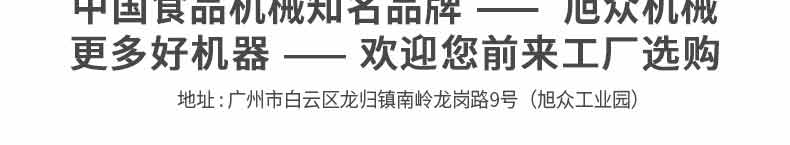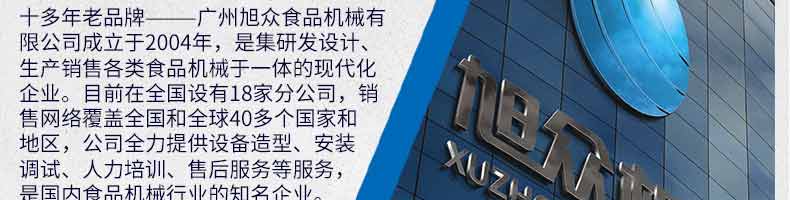 廣州旭眾食品機(jī)械有限公司是一家集科研開發(fā),生產(chǎn)設(shè)計(jì),營銷服務(wù)為一體的現(xiàn)代化生產(chǎn)企業(yè)?,F(xiàn)代化生產(chǎn)車間,精湛制造技術(shù),所產(chǎn)機(jī)械歷經(jīng)市場重重考驗(yàn),不斷贏得海內(nèi)外客戶的贊譽(yù)。