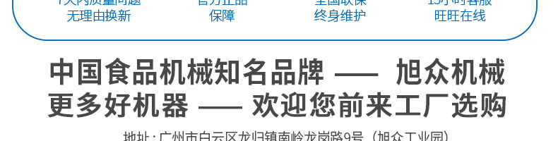 廣州旭眾食品機(jī)械有限公司是一家集科研開(kāi)發(fā),生產(chǎn)設(shè)計(jì),營(yíng)銷服務(wù)為一體的現(xiàn)代化生產(chǎn)企業(yè)。現(xiàn)代化生產(chǎn)車間,精湛制造技術(shù),所產(chǎn)機(jī)械歷經(jīng)市場(chǎng)重重考驗(yàn),不斷贏得海內(nèi)外客戶的贊譽(yù)。