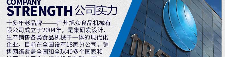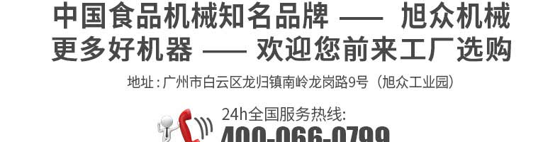 廣州旭眾食品機(jī)械有限公司是一家集科研開發(fā),生產(chǎn)設(shè)計(jì),營銷服務(wù)為一體的現(xiàn)代化生產(chǎn)企業(yè)?,F(xiàn)代化生產(chǎn)車間,精湛制造技術(shù),所產(chǎn)機(jī)械歷經(jīng)市場重重考驗(yàn),不斷贏得海內(nèi)外客戶的贊譽(yù)。