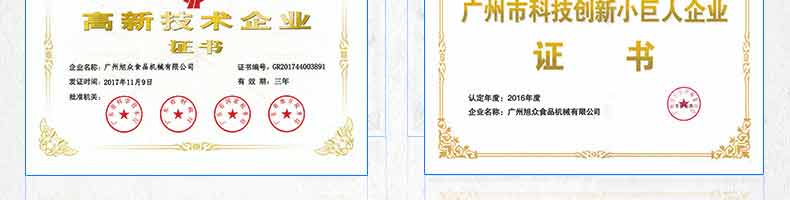 廣州旭眾食品機械有限公司是一家集科研開發(fā),生產(chǎn)設計,營銷服務為一體的現(xiàn)代化生產(chǎn)企業(yè)?,F(xiàn)代化生產(chǎn)車間,精湛制造技術(shù),所產(chǎn)機械歷經(jīng)市場重重考驗,不斷贏得海內(nèi)外客戶的贊譽。