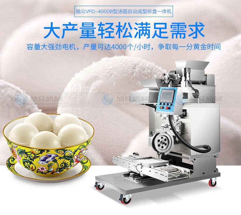VFD-4000B湯丸機(jī),告別手工時代旭僉多功能湯圓機(jī)輕松解決問題。大產(chǎn)量輕松滿足需求容量大強(qiáng)勁電機(jī),產(chǎn)量可達(dá)4000個小時,爭取每一分黃金時間