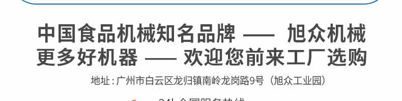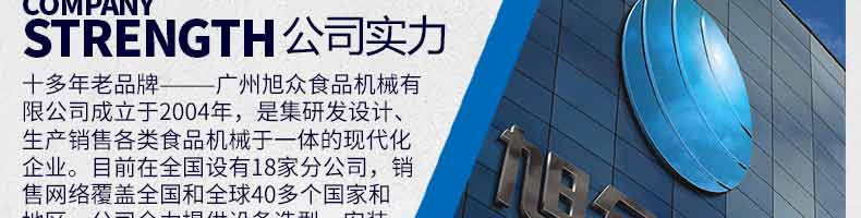 廣州旭眾食品機(jī)械有限公司是一家集科研開(kāi)發(fā),生產(chǎn)設(shè)計(jì),營(yíng)銷服務(wù)為一體的現(xiàn)代化生產(chǎn)企業(yè)。現(xiàn)代化生產(chǎn)車間,精湛制造技術(shù),所產(chǎn)機(jī)械歷經(jīng)市場(chǎng)重重考驗(yàn),不斷贏得海內(nèi)外客戶的贊譽(yù)。