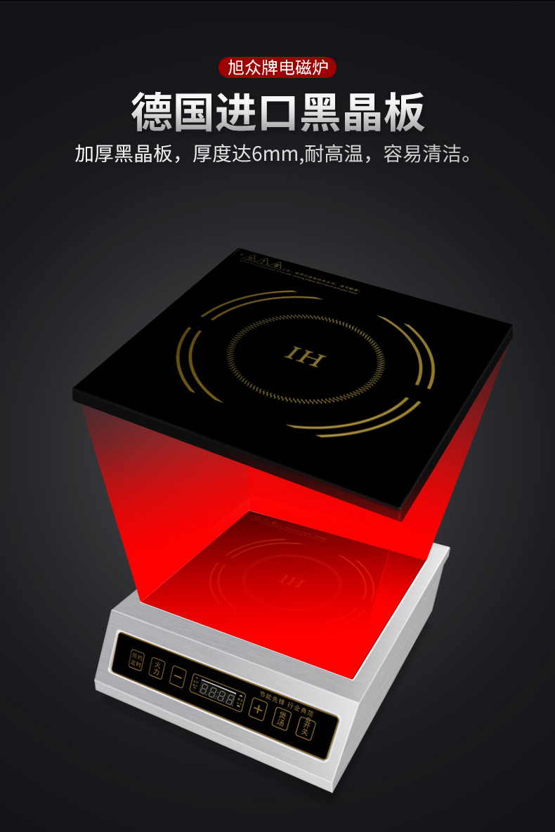 旭眾無明火電磁爐,電磁灶,通過電磁感應工作的,所以不必擔心會像煤氣爐那樣因漏氣而引起爆炸或火災等嚴重隱患。是 家用/商用理想選擇 !歡迎廣大餐飲行業(yè)精英來旭眾考察,選擇適合您的高效節(jié)能環(huán)保加熱設備。