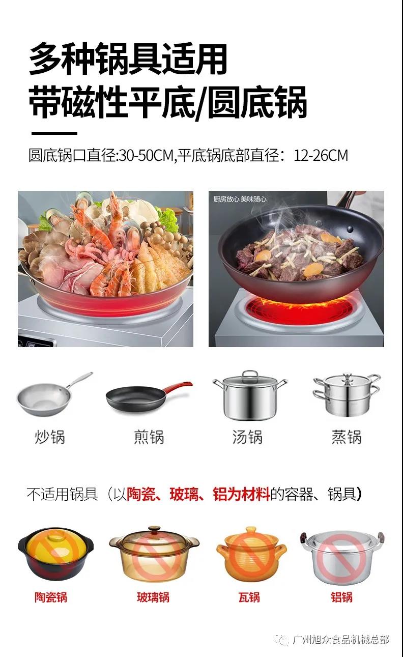 商用電磁爐和大功率電磁灶用在食堂,學校,火車上,輪船上,酒店,餐館里,它們需要長時間的處于工作狀態(tài),電磁爐不受溫度驟變能力影響,適用于各種場地使用。