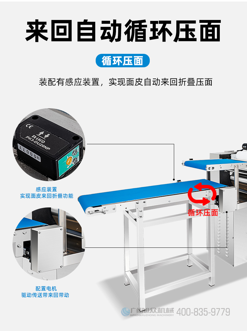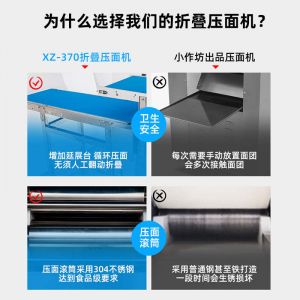 XZ-ZDYMJ370型自動折疊壓面機(jī),整機(jī)不銹鋼機(jī)身打造,真材實料,選用不銹鋼材質(zhì),打造經(jīng)久耐用、防腐蝕。匠心細(xì)節(jié),彰顯品質(zhì)貼心設(shè)計。一鍵設(shè)定壓面次數(shù),智能定時,只需設(shè)定好壓面次數(shù),就能全自動壓面出面。