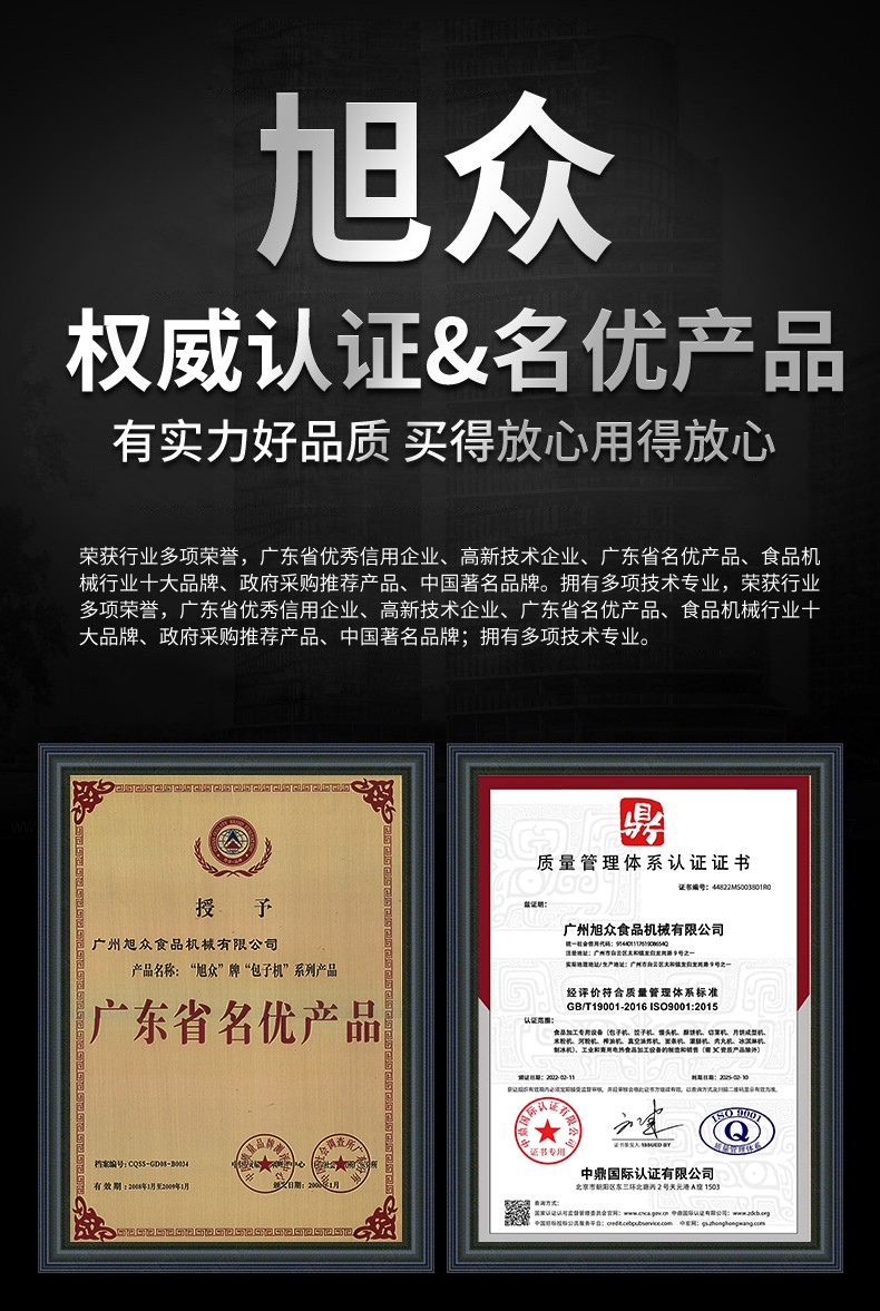 廣州旭眾食品機(jī)械有限公司是一家集科研開發(fā),生產(chǎn)設(shè)計,營銷服務(wù)為一體的現(xiàn)代化生產(chǎn)企業(yè)?,F(xiàn)代化生產(chǎn)車間,精湛制造技術(shù),所產(chǎn)機(jī)械歷經(jīng)市場重重考驗,不斷贏得海內(nèi)外客戶的贊譽(yù)。