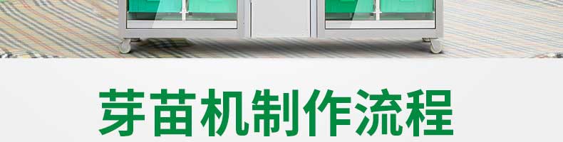 芽苗機(jī)系列,全自動(dòng)芽苗機(jī):智能化一生產(chǎn)安全無公害的芽苗,智能控溫、定時(shí)淋水、自帶照明裝置,給芽苗提供一個(gè)適宜生長的溫度,濕度,個(gè)人即可輕松搞定,實(shí)現(xiàn)每天循環(huán)生產(chǎn)芽苗!