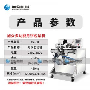 XZ-68月餅包餡機,一次成型大小均勻,操作簡單,可生產豆沙、五仁、蓮蓉等餡料的包餡類產品制品皮餡比例可調,大小統(tǒng)