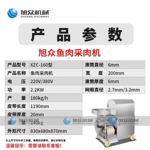 XZC-160型魚肉采肉機(jī),去刺干凈、高效出肉。加工魚肉去刺、蟹蝦去殼等。手工去魚刺太累了,傳統(tǒng)的魚糜加工中,手工去魚皮魚刺,既費(fèi)時又費(fèi)力不小心就會傷到手。