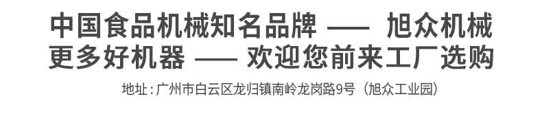 廣州旭眾食品機械有限公司是一家集科研開發(fā),生產(chǎn)設(shè)計,營銷服務(wù)為一體的現(xiàn)代化生產(chǎn)企業(yè)。現(xiàn)代化生產(chǎn)車間,精湛制造技術(shù),所產(chǎn)機械歷經(jīng)市場重重考驗,不斷贏得海內(nèi)外客戶的贊譽。