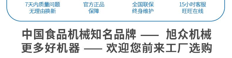 廣州旭眾食品機(jī)械有限公司是一家集科研開發(fā),生產(chǎn)設(shè)計,營銷服務(wù)為一體的現(xiàn)代化生產(chǎn)企業(yè)?,F(xiàn)代化生產(chǎn)車間,精湛制造技術(shù),所產(chǎn)機(jī)械歷經(jīng)市場重重考驗(yàn),不斷贏得海內(nèi)外客戶的贊譽(yù)。