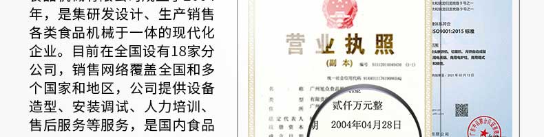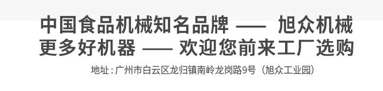 廣州旭眾食品機械有限公司是一家集科研開發(fā),生產(chǎn)設計,營銷服務為一體的現(xiàn)代化生產(chǎn)企業(yè)?,F(xiàn)代化生產(chǎn)車間,精湛制造技術,所產(chǎn)機械歷經(jīng)市場重重考驗,不斷贏得海內(nèi)外客戶的贊譽。