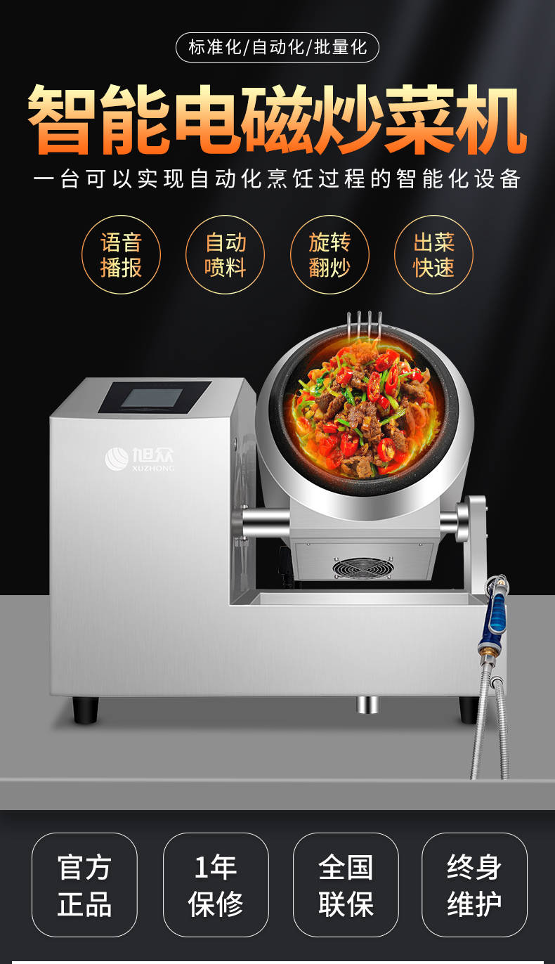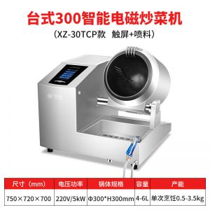 XZ-30TCP臺(tái)式300智能電磁炒菜機(jī)(觸屏+噴料),可以實(shí)現(xiàn)自動(dòng)化烹飪過(guò)程的智能化設(shè)備,語(yǔ)音播報(bào)、自動(dòng)噴料、旋轉(zhuǎn)翻炒、快速出菜。實(shí)現(xiàn)自動(dòng)化烹飪,新一代微電腦操控智能烹飪?cè)O(shè)備、顛覆傳統(tǒng)炒菜模式。5000W猛火爆炒美食更鮮香