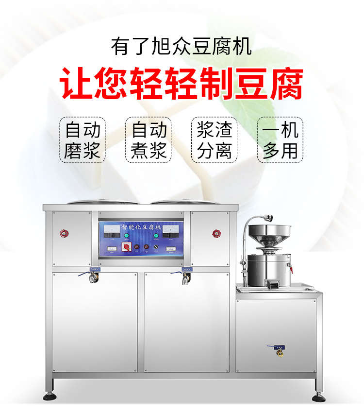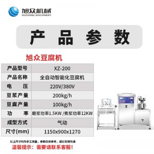 XZ-300型氣動壓榨豆腐機,智能豆腐豆?jié){機,雙桶煮漿高效生產現(xiàn)磨現(xiàn)煮,漿渣分離快速出漿。機器運行穩(wěn)定不銹鋼材質打造,堅固耐用,安全衛(wèi)生,時尚大方,易于清洗。
