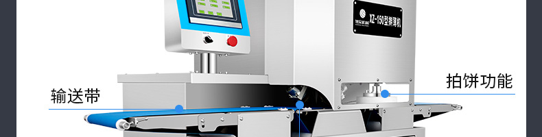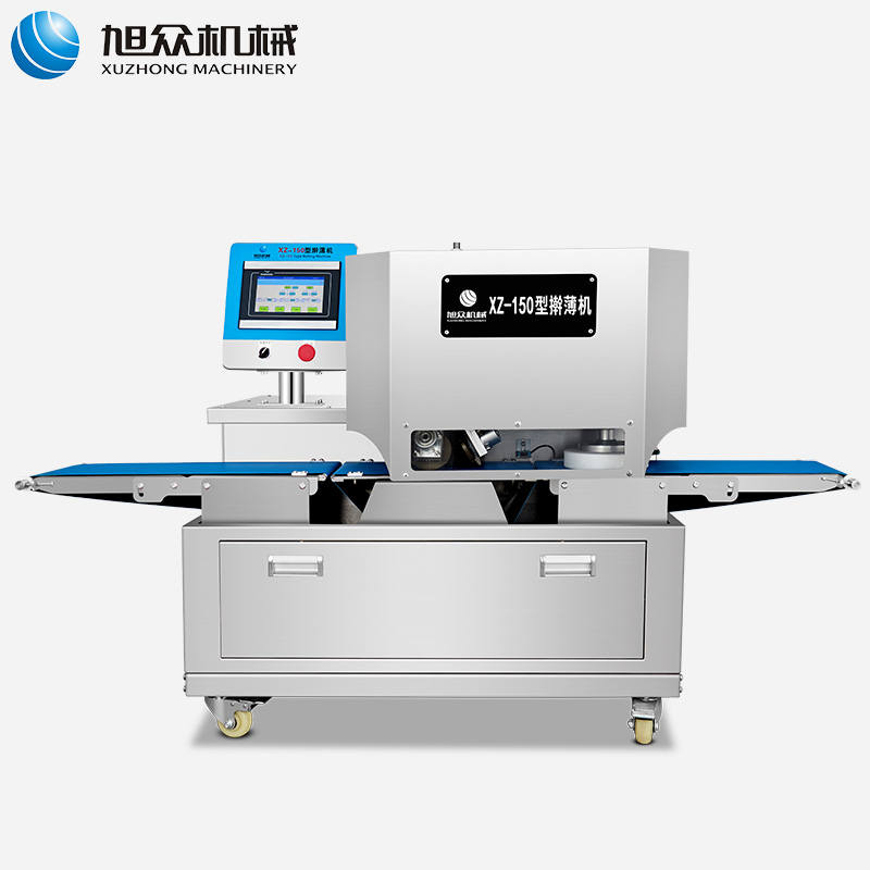 XZ-150型搟薄機,為一種對面團可進行氣動拍餅或仿手工搟薄的設(shè)備,可根據(jù)用戶需要對面團的直徑、厚度進行調(diào)整并將面團按照設(shè)定的規(guī)格進行搓圓摔搟薄。