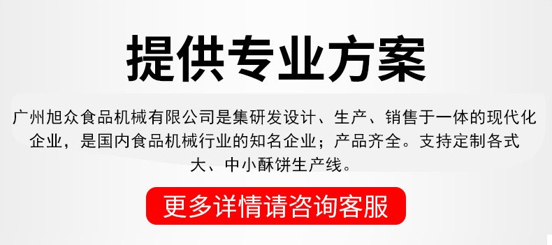 廣州旭眾食品機械有限公司是一家集科研開發(fā),生產(chǎn)設(shè)計,營銷服務(wù)為一體的現(xiàn)代化生產(chǎn)企業(yè)?,F(xiàn)代化生產(chǎn)車間,精湛制造技術(shù),所產(chǎn)機械歷經(jīng)市場重重考驗,不斷贏得海內(nèi)外客戶的贊譽。
