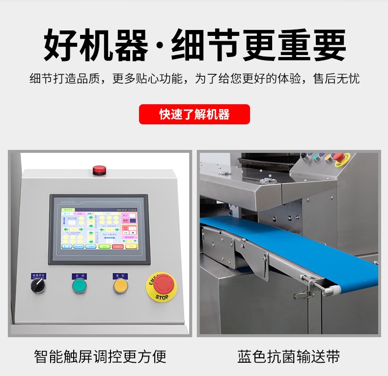 多功能商用高速排盤機(jī),自動化程度高,可根據(jù)產(chǎn)品大小自由調(diào)節(jié)列數(shù)、排數(shù),自動將產(chǎn)品自動地排放在烘盤中,操作簡單,運(yùn)行平穩(wěn)。智能觸屏面板??刂葡到y(tǒng)由三菱PLC和進(jìn)口觸摸屏組成,操作簡單方便。具有故障自動診斷,一目了然。