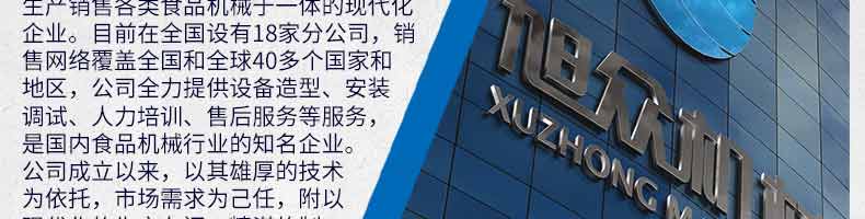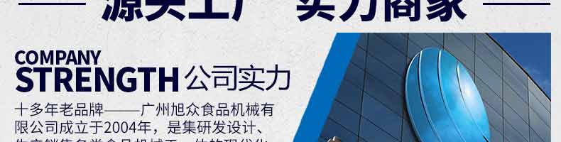 廣州旭眾食品機械有限公司是一家集科研開發(fā),生產(chǎn)設(shè)計,營銷服務(wù)為一體的現(xiàn)代化生產(chǎn)企業(yè)。現(xiàn)代化生產(chǎn)車間,精湛制造技術(shù),所產(chǎn)機械歷經(jīng)市場重重考驗,不斷贏得海內(nèi)外客戶的贊譽。
