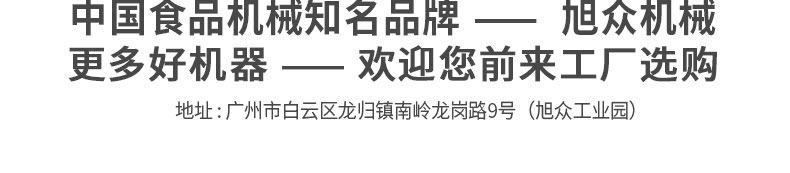 廣州旭眾食品機(jī)械有限公司是一家集科研開發(fā),生產(chǎn)設(shè)計(jì),營(yíng)銷服務(wù)為一體的現(xiàn)代化生產(chǎn)企業(yè)?,F(xiàn)代化生產(chǎn)車間,精湛制造技術(shù),所產(chǎn)機(jī)械歷經(jīng)市場(chǎng)重重考驗(yàn),不斷贏得海內(nèi)外客戶的贊譽(yù)。