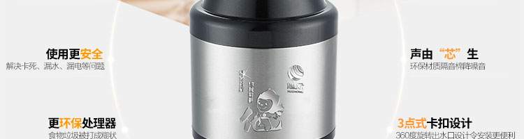 DCLQ40-廚房垃圾處理器,該機(jī)是一種現(xiàn)代化的廚房電器,它用全新的方法來(lái)處理現(xiàn)代家庭中的食品廢物。處理器裝于廚房水槽下,能夠有效地將食物垃圾研磨成細(xì)小顆粒,直接從下水管道排出,從而輕松實(shí)現(xiàn)及時(shí)方便快捷的廚房清潔,優(yōu)化家居環(huán)境。
