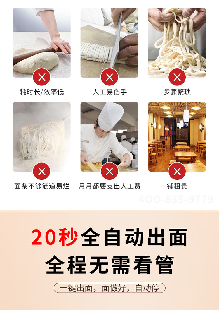 全自動商用快速出面電動素面濕面M500臺式制面機(jī)器,20秒全自動出面,全程無需看管。一鍵出面,面做好,自動停。均勻滴漏加水系統(tǒng),水面比例把握更好。自動滴漏加水系統(tǒng),運(yùn)作過程加水更均勻,適量控水,面條更有嚼勁。