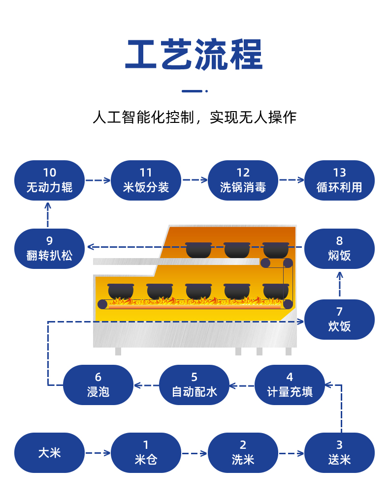 米飯生產(chǎn)線,主要結(jié)構(gòu):不銹鋼箱體,密閉不銹鋼飯盤,自動加熱循環(huán)系統(tǒng)。適用對象:大型米飯加工中心、快餐公司、大型配餐中心企事業(yè)單位、學(xué)校食堂、釀造企業(yè)等。實(shí)力大咖商用好幫手。提供培訓(xùn)、指導(dǎo)和工藝傳授,品牌服務(wù)有保障。