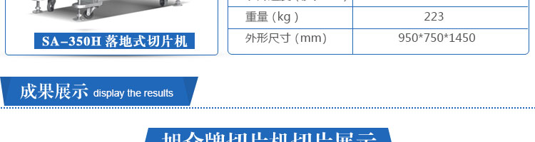 SA-350H 全自動(dòng)落地式切片機(jī),適合切無骨肉類和其他類似榨菜帶有彈性的食物,把原材料肉切成肉片,并可自動(dòng)成卷狀。可切牛肉片、羊肉片等