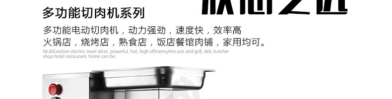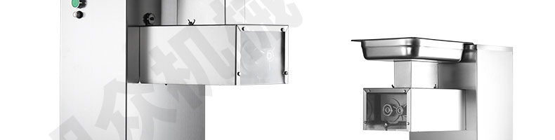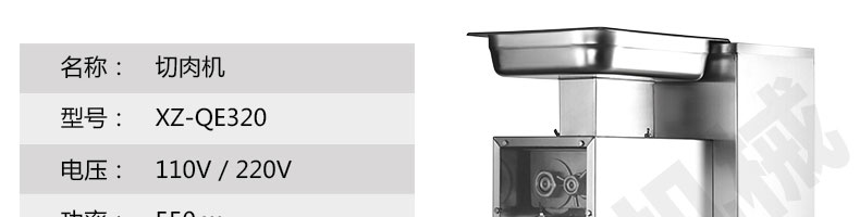 XZ-QE切肉機(jī),是一款可方便移動(dòng)的肉類加工設(shè)備,配置單層刀具一次性切肉片,二次切肉絲,再切成粒。底座設(shè)置有滑輪,移動(dòng)靈活,輕松便捷;刀具采取外置懸臂式設(shè)計(jì),拆洗方便,衛(wèi)生更有保障;配置多種刀具,可加工不同厚度的肉片,實(shí)現(xiàn)一機(jī)多用;機(jī)內(nèi)裝有安全保護(hù)開頭,刀具外露時(shí),機(jī)器自鎖不能啟動(dòng),以保安全;刀片用特殊不銹鋼材料制造,經(jīng)久耐用;卸下的刀具,不用清洗直接放置在6攝氏度以下的冰箱里,刀具余肉不發(fā)臭。