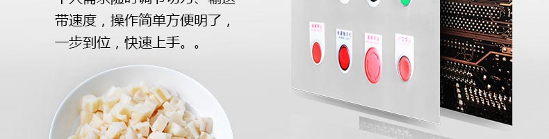 XZ-680A多功能切菜機(jī),一機(jī)多用,可切葉菜及根莖類蔬菜,并可切片、絲、條、丁、段,碎等,切菜規(guī)格可根據(jù)不同需要調(diào)節(jié)尺寸,方便快捷。隨機(jī)共配送三套刀具。