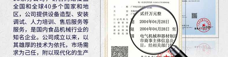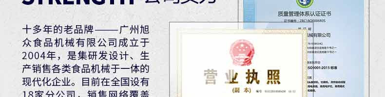 廣州旭眾食品機械有限公司是一家集科研開發(fā),生產(chǎn)設計,營銷服務為一體的現(xiàn)代化生產(chǎn)企業(yè)?,F(xiàn)代化生產(chǎn)車間,精湛制造技術,所產(chǎn)機械歷經(jīng)市場重重考驗,不斷贏得海內(nèi)外客戶的贊譽。