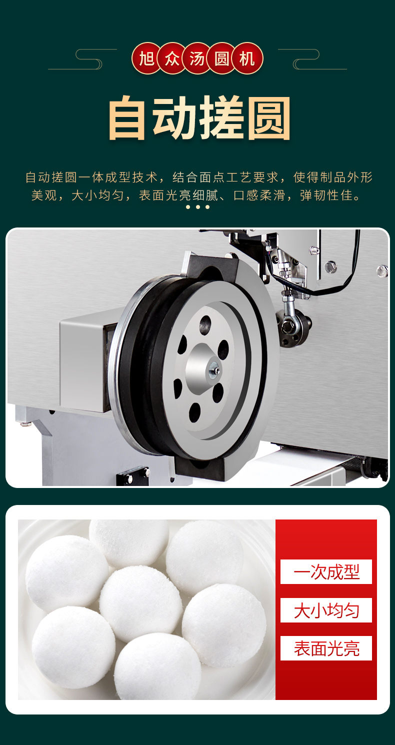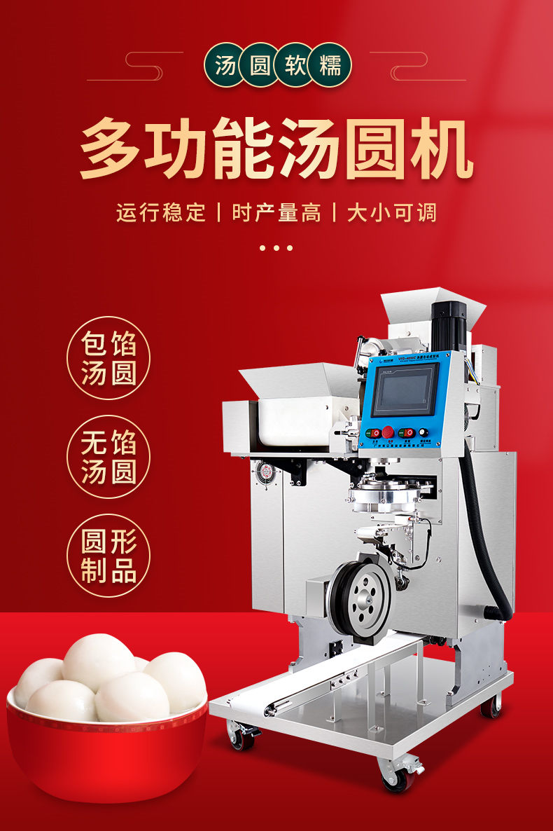 4000C湯圓機,多功能湯圓機,運行穩(wěn)定、時產(chǎn)量高、大小可調。制品多樣性生產(chǎn)各種大小規(guī)格不同的有餡湯圓,無餡湯圓、豆沙包、南瓜餅,芝麻球,地瓜丸,香芋丸,葉兒粑,青團,粘豆包等。