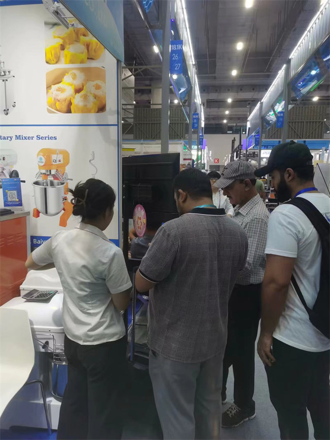展臺上整齊地擺放著各種食品加工機(jī)械,從冰激凌機(jī)到包子機(jī)、和面機(jī)、攪拌機(jī)等,每一樣產(chǎn)品都展示著公司的技術(shù)實力和創(chuàng)新能力。