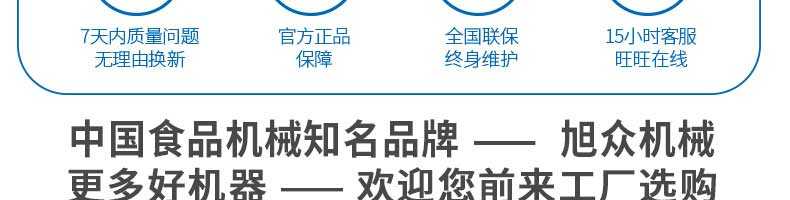 廣州旭眾食品機(jī)械有限公司是一家集科研開發(fā),生產(chǎn)設(shè)計(jì),營銷服務(wù)為一體的現(xiàn)代化生產(chǎn)企業(yè)?,F(xiàn)代化生產(chǎn)車間,精湛制造技術(shù),所產(chǎn)機(jī)械歷經(jīng)市場重重考驗(yàn),不斷贏得海內(nèi)外客戶的贊譽(yù)。
