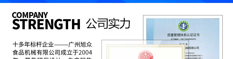 廣州旭眾食品機(jī)械有限公司是一家集科研開發(fā),生產(chǎn)設(shè)計(jì),營(yíng)銷服務(wù)為一體的現(xiàn)代化生產(chǎn)企業(yè)。現(xiàn)代化生產(chǎn)車間,精湛制造技術(shù),所產(chǎn)機(jī)械歷經(jīng)市場(chǎng)重重考驗(yàn),不斷贏得海內(nèi)外客戶的贊譽(yù)。