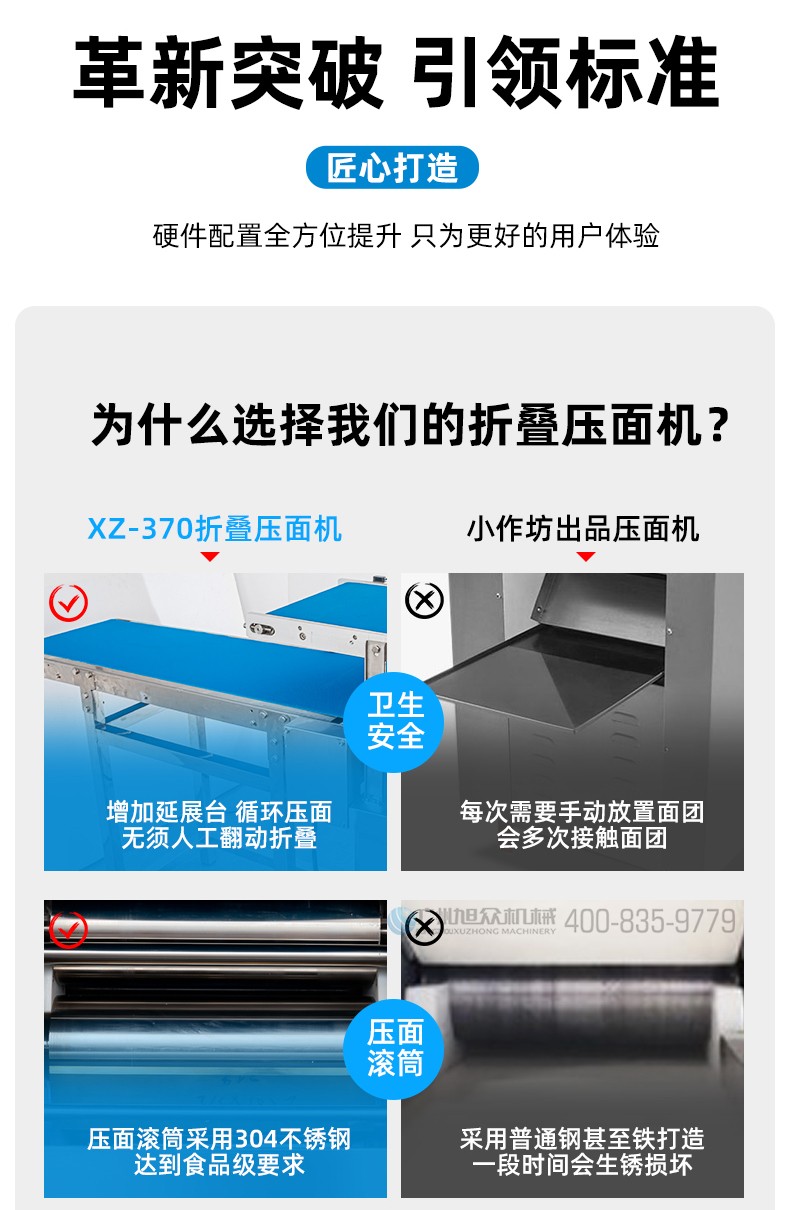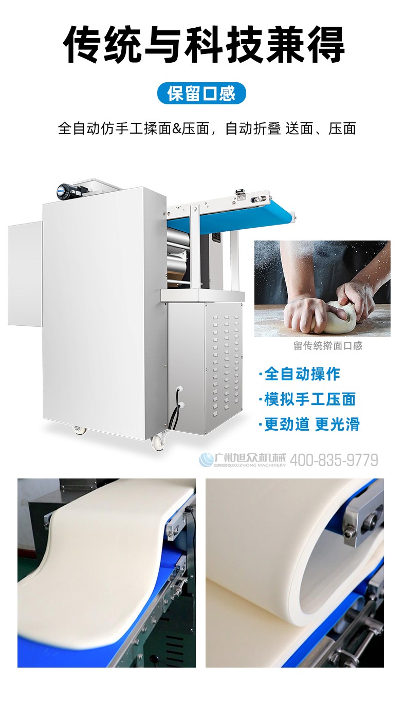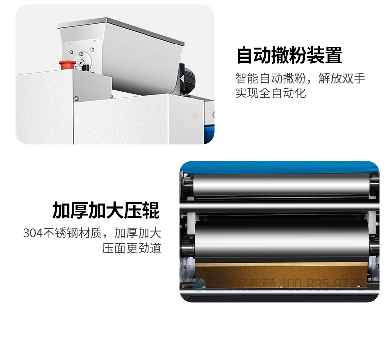 XZ-ZDYMJ370型自動折疊壓面機(jī),整機(jī)不銹鋼機(jī)身打造,真材實料,選用不銹鋼材質(zhì),打造經(jīng)久耐用、防腐蝕。匠心細(xì)節(jié),彰顯品質(zhì)貼心設(shè)計。一鍵設(shè)定壓面次數(shù),智能定時,只需設(shè)定好壓面次數(shù),就能全自動壓面出面。