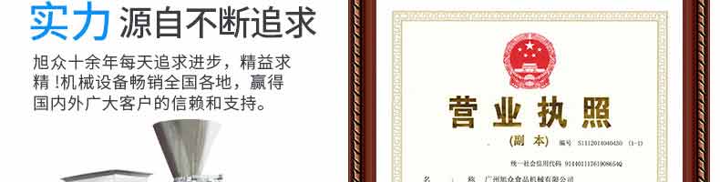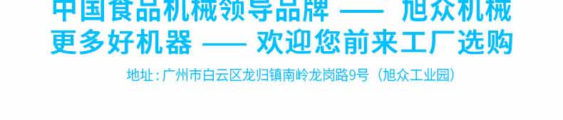 廣州旭眾食品機(jī)械有限公司是一家集科研開(kāi)發(fā),生產(chǎn)設(shè)計(jì),營(yíng)銷(xiāo)服務(wù)為一體的現(xiàn)代化生產(chǎn)企業(yè)。現(xiàn)代化生產(chǎn)車(chē)間,精湛制造技術(shù),所產(chǎn)機(jī)械歷經(jīng)市場(chǎng)重重考驗(yàn),不斷贏得海內(nèi)外客戶的贊譽(yù)。