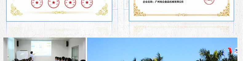 廣州旭眾食品機械有限公司是一家集科研開發(fā),生產設計,營銷服務為一體的現(xiàn)代化生產企業(yè)?,F(xiàn)代化生產車間,精湛制造技術,所產機械歷經(jīng)市場重重考驗,不斷贏得海內外客戶的贊譽。